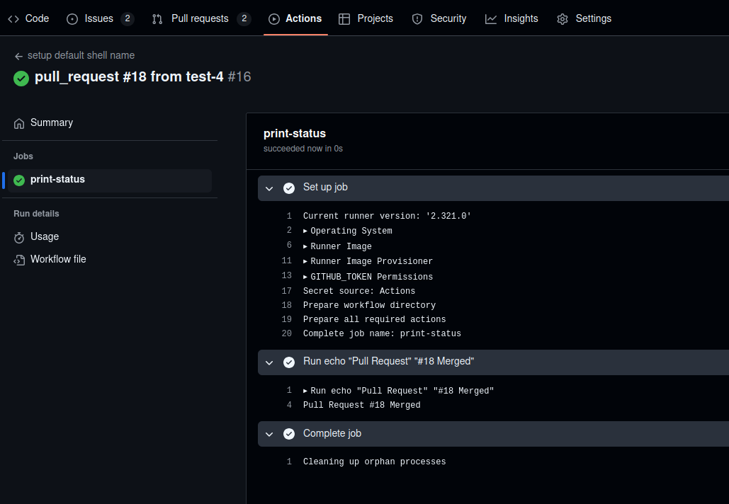 - run: echo "Pull Request" "#${{ github.event.number }} Merged"