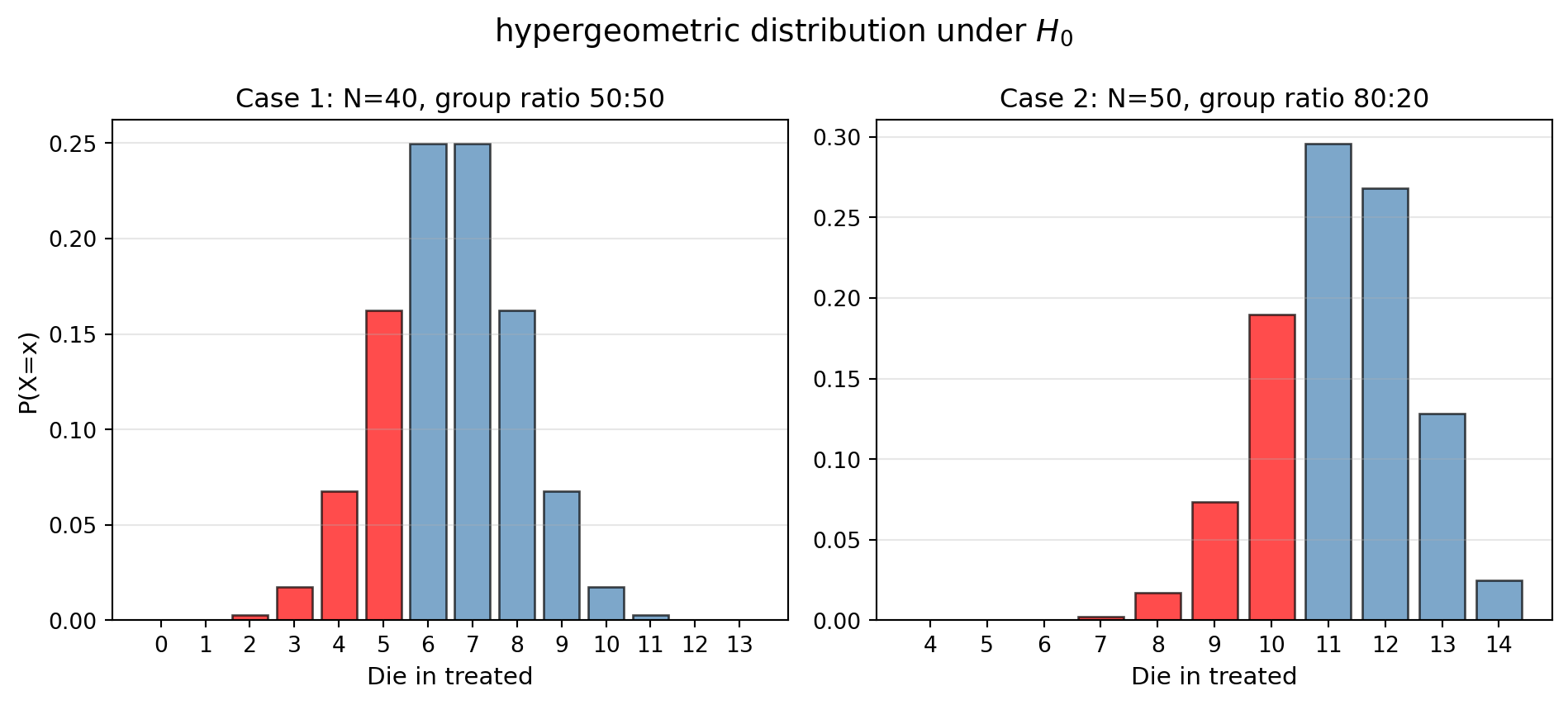 ここで、rは両群の成功数の合計、xは第1群の成功数、
